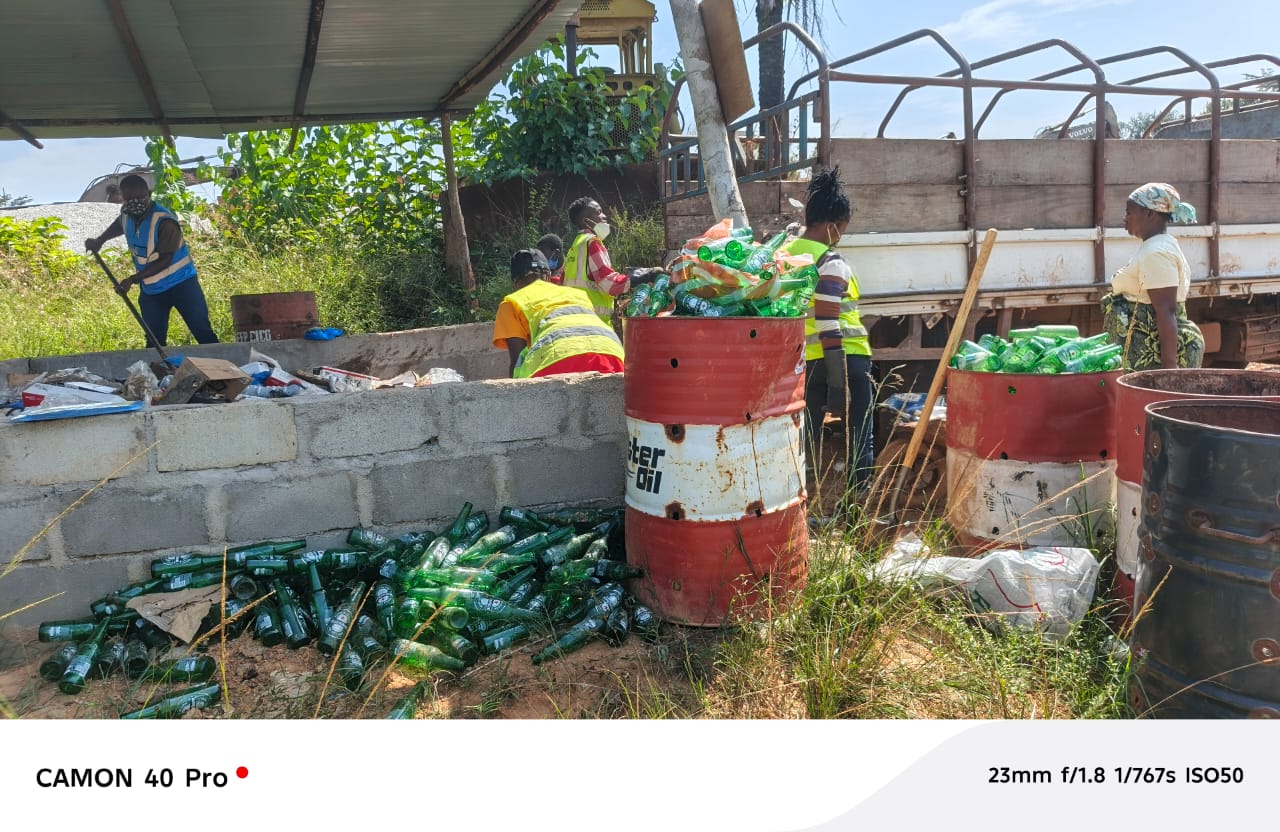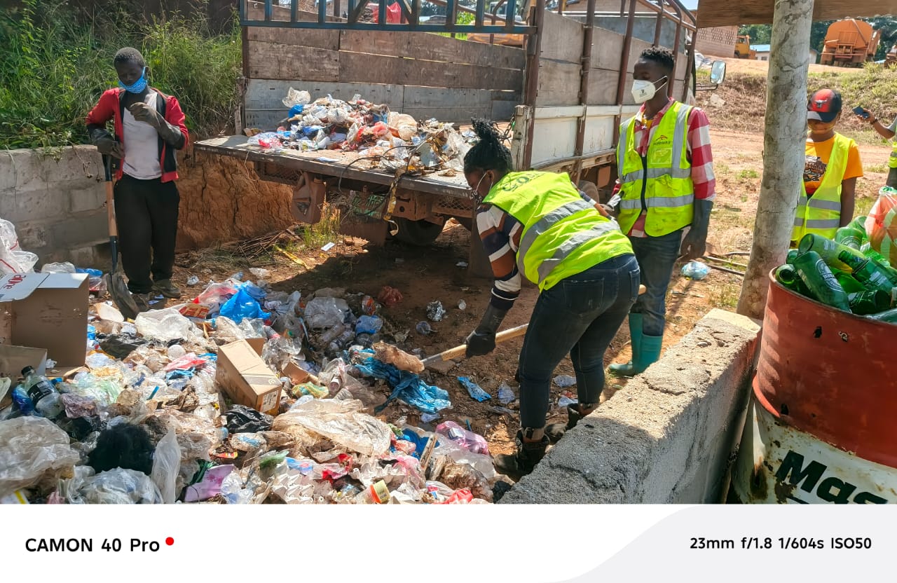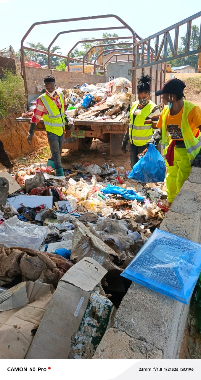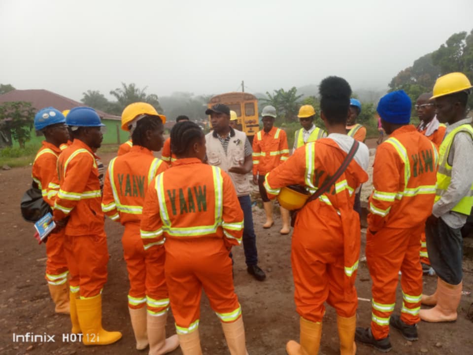 Images of YAAW cleanups, youth training sessions, sanitation work, and project collaborations.